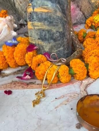 Gold Plated Trishul Pendant With Chain